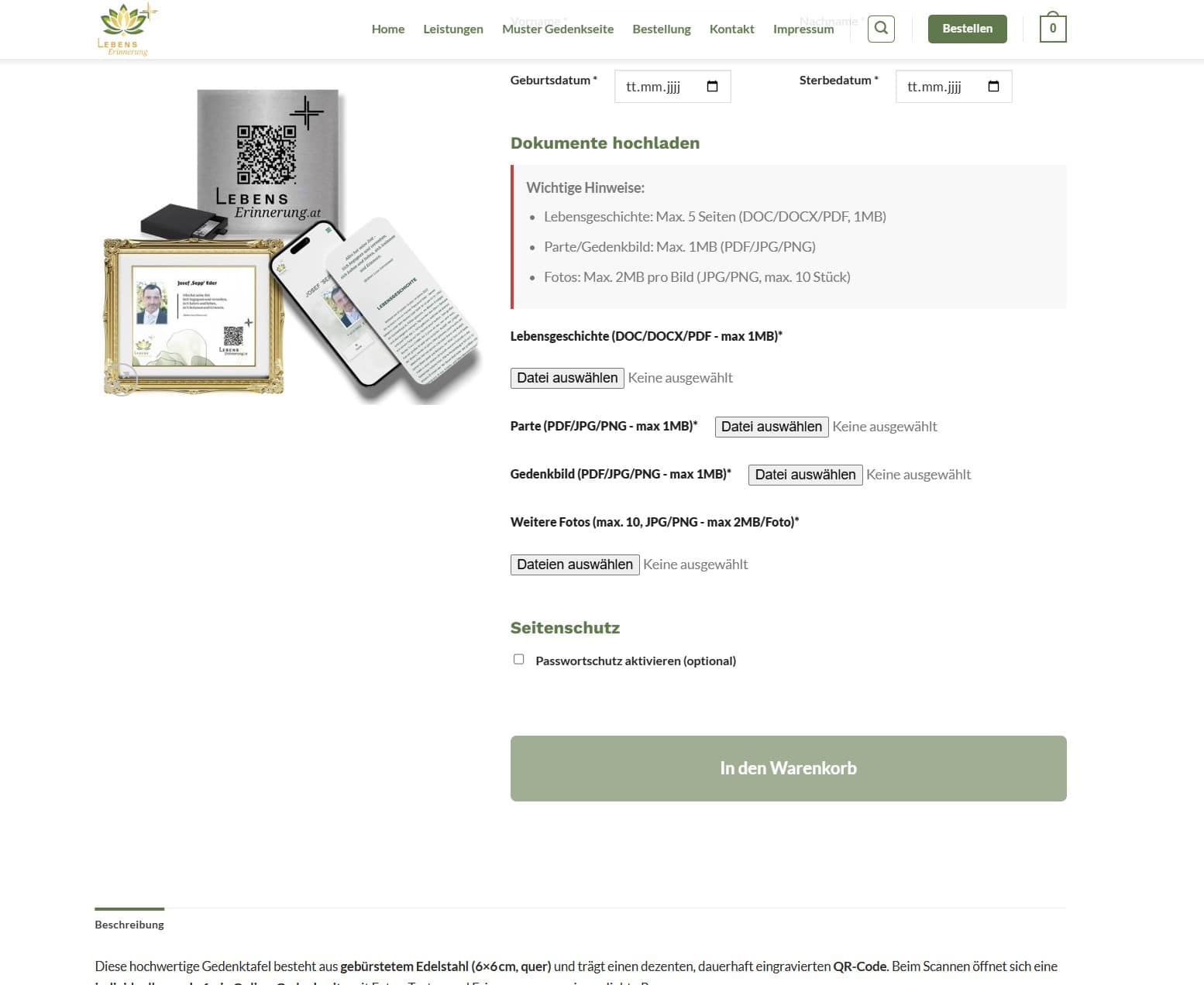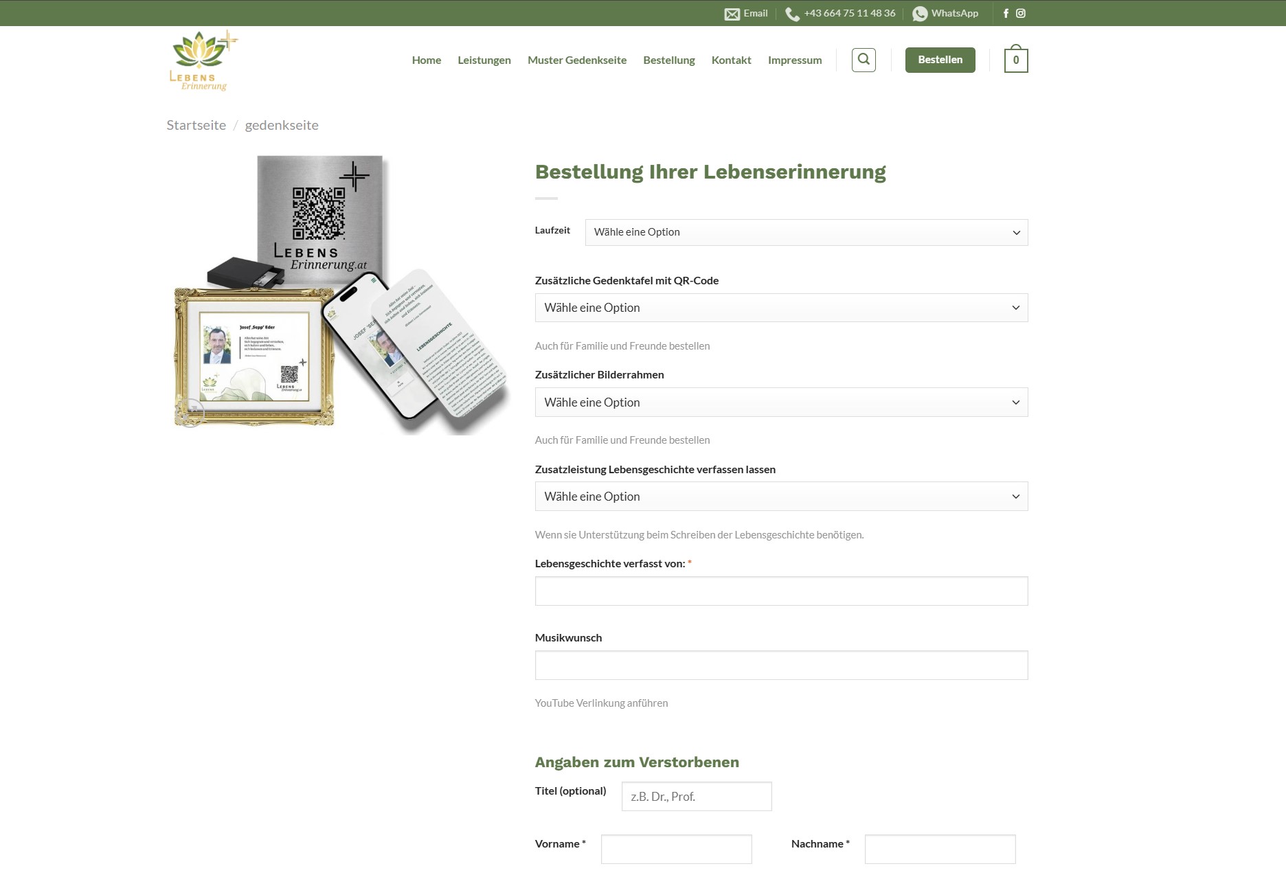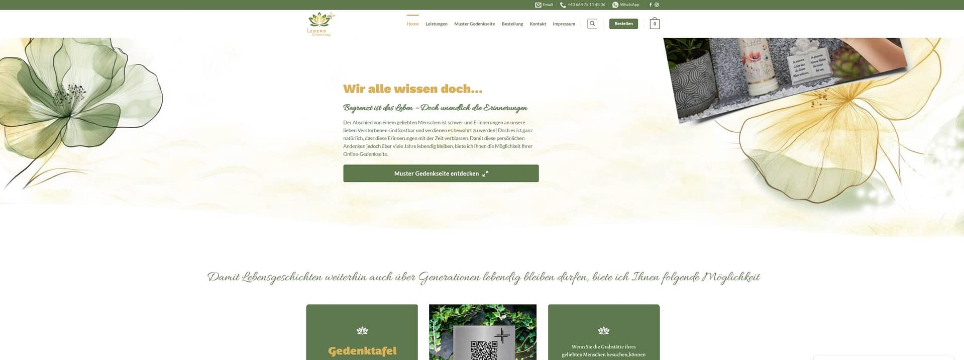 Für die Plattform www.lebenserinnerung.at haben wir eine nutzerfreundliche Website entwickelt, die es Klienten auf sensible Weise ermöglicht, ihre Lebensgeschichte festzuhalten und ein persönliches Erinnerungsbuch zu erstellen. Der Fokus lag auf einer klaren Struktur und einem ansprechenden Design, das Vertrauen schafft und den biografischen Prozess erleichtert.
